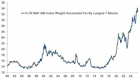 Ilmiön laajuutta kuvaa muun muassa hyvin se, että vain seitsemän yhtiötä S&P 500:sta vastaa peräti kolmanneksesta näiden 500:n yhtiön markkina-arvosta. Ja jokainen ETF:iin sijoitettu lisäeuro vain lisää tätä markkinoiden keskittymistä suuriin yhtiöihin.