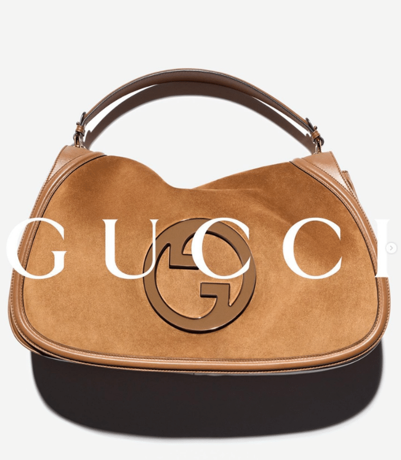 Kuvassa Sabato De Sarnon suunnittelema Gucci Blondie -laukku. Tunnusomainen logo ilmestyi ensimmäisen kerran talon kokoelmissa 1970-luvun alussa. Se yhdistää Guccin menneisyyden ja nykytilan nostalgiaa ja modernisuutta yhdistäen. Kuva: GUCCI Instagram