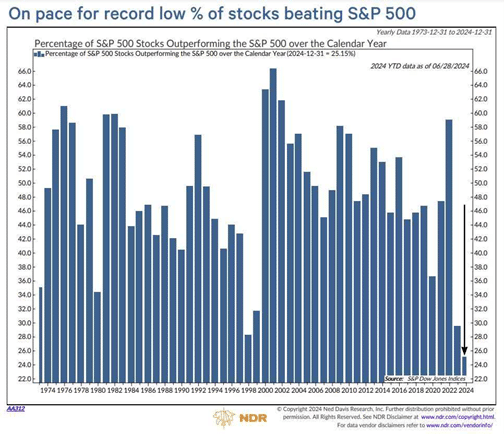 Vaikka S&P 500 -indeksi on alkuvuonna ylös 14,5 %, on tasapainotetun indeksin tuotto ainoastaan 4,0 %.