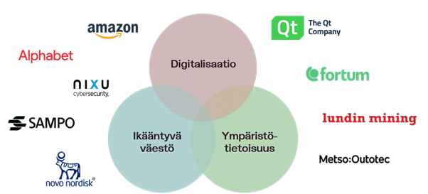 Ihmisten kasvanut ympäristötietoisuus tulee näkemyksemme mukaan nostamaan esimerkiksi sähköautojen kysyntää merkittävästi tulevina vuosina. Haluamme olla mukana yrityksissä, jotka ovat ”part of the solution not the problem”. Esimerkiksi kuparintuottajat hyötyvät sähköautojen kasvavasta kysynnästä. Samaten yritykset, jotka tarjoavat kaivosalan yrityksille laitteita ja projekteja niiden tarvitsemiin kasvuinvestointeihin, tulevat myös olemaan hyvässä asemassa tulevina vuosina.